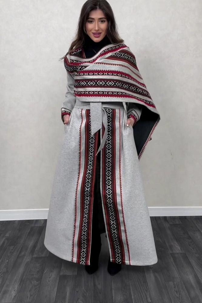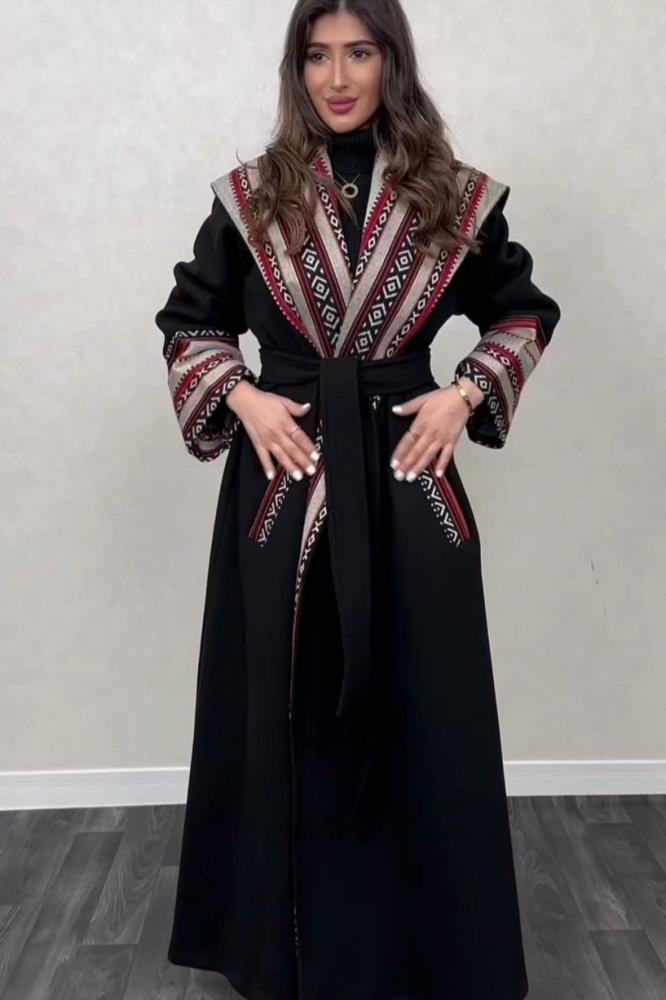 استمتعي بالدفء والأناقة في هذا البشت الشتوي المصنوع من جوخ عالي الجودة, والمطرز بنقوش السدو التراثية التي تعكس متكاملة خلال الأيام الباردة.