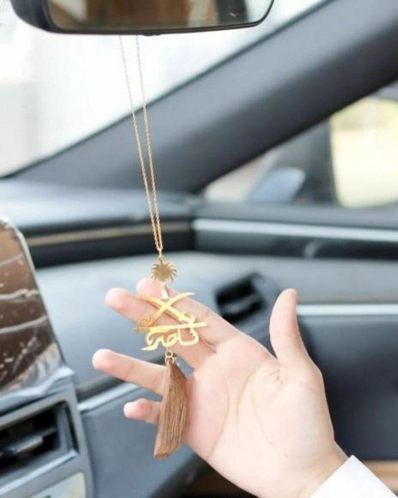 تعليقة سيارة بالاسم ، من متجر شمل ، المطلية بالذهب أو الفضة، تضيف لمسة راقية وفخمة لسيارتك. متوفرة بلونين مميزين، ،الذهبي ، والفضي، وتقدر تختار بين ، تعليقة سيارة فخمة ، . أو خيار بسيط مثل ، تعليقة سيارة دعاء ، زي "استودعتك الله"، اللي تمنحك شعور بالراحة كل ما نظرت لها.