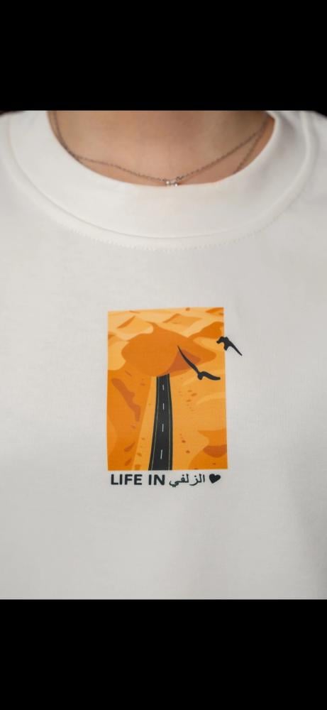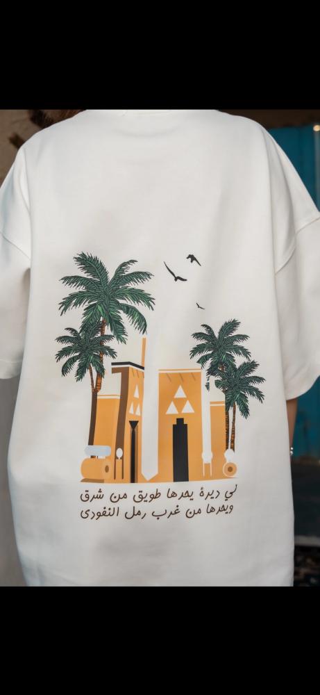 تيشيرت مميز بتصميم إبداعي مستوحى من طبيعة ومعالم الزلفي، يجمع بين ألوان الصحراء وسحر النخيل والعمارة التراثية، مع لمسات فنية تعبّر عن الأصالة والانتماء.