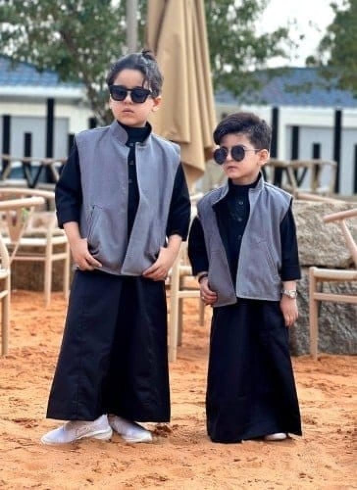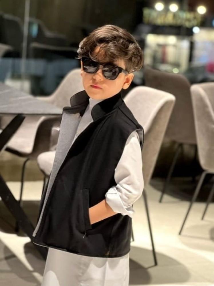 سديري جوخ دبل فيس للاطفال اسود-رصاصي