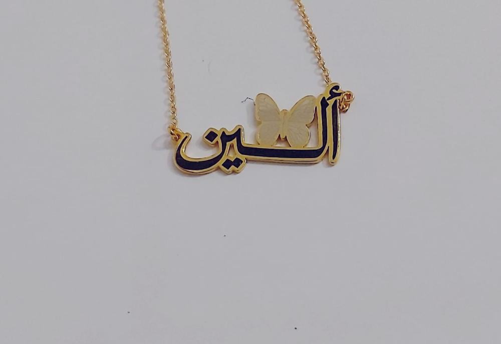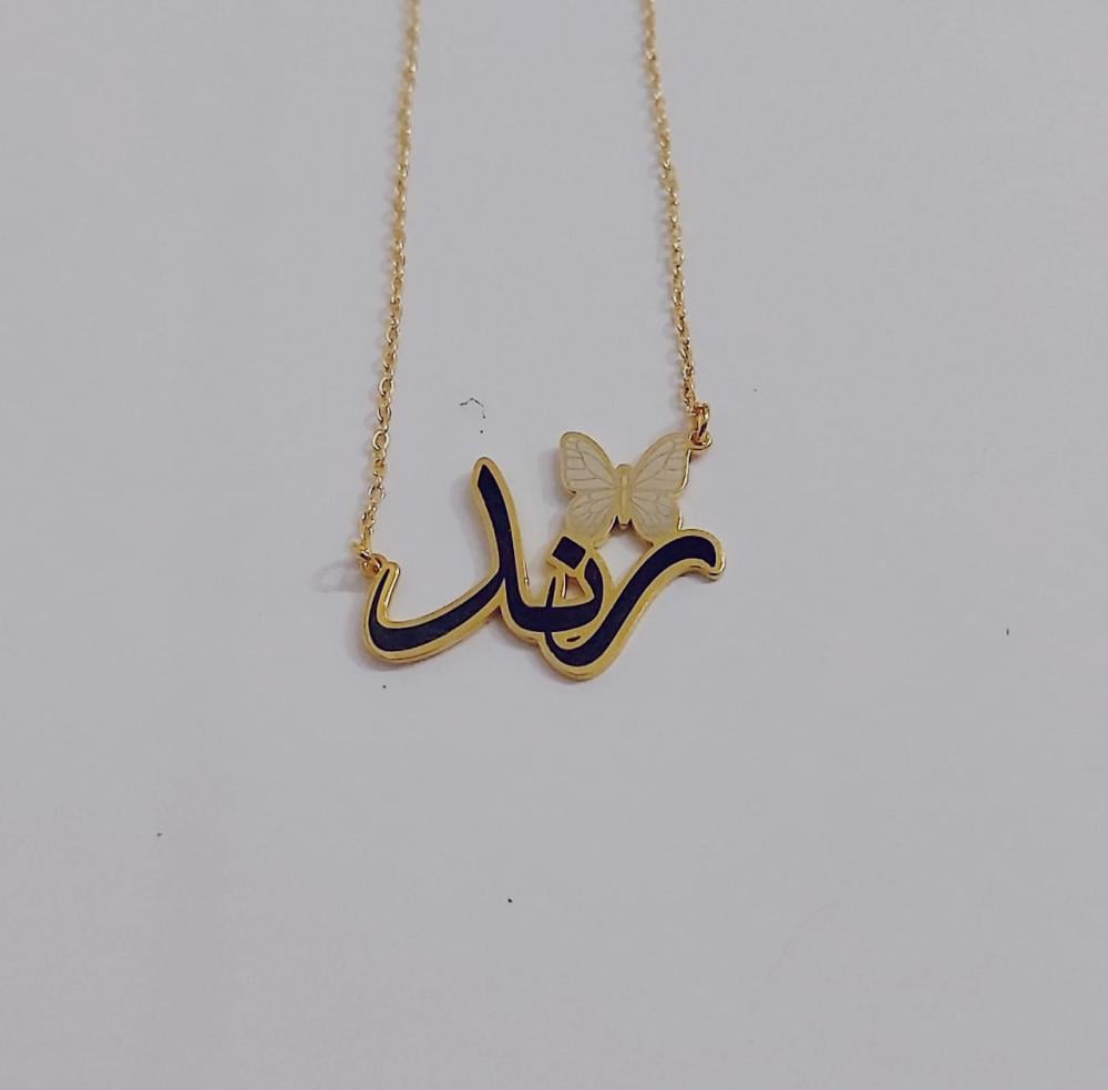 اكتشف جمال الأناقة مع سلسال بالاسم مع فراشة ناعمة مرصعة بالزركون من متجر شمل. هذا السلسال هو أكثر من مجرد قطعة مجوهرات؛ إنه تعبير عن ذوقك الفريد وهويتك. يمكنك تخصيص أي اسم أو كلمة، سواء بالعربية أو الإنجليزية، ليصبح السلسال رمزًا خاصًا لك.