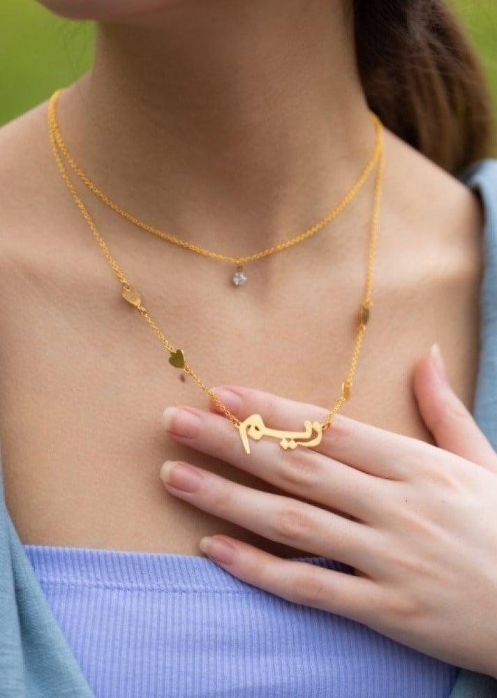 الأسماء تبدأ بحرف، والجمال ينتهي بحرفية عالية، هنا تمتزج طلاء الذهب في سلسال مع الاسماء لتشكل واحدة من أجمل الاكسسوارات،