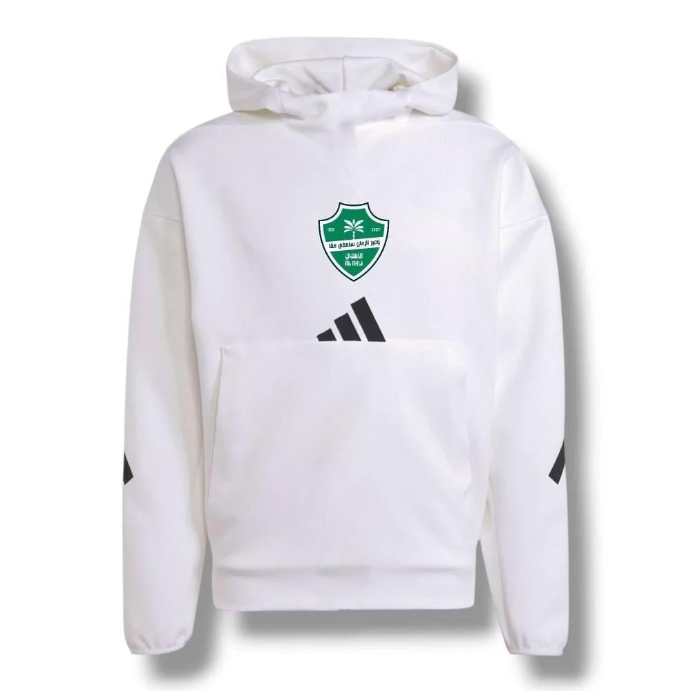 ويزين الطقم شعار النادي الأهلي السعودي المطرز على الصدر والبنطلون، ليمنحك شعوراً بالفخر والانتماء مع كل تمرين. 💚🤍