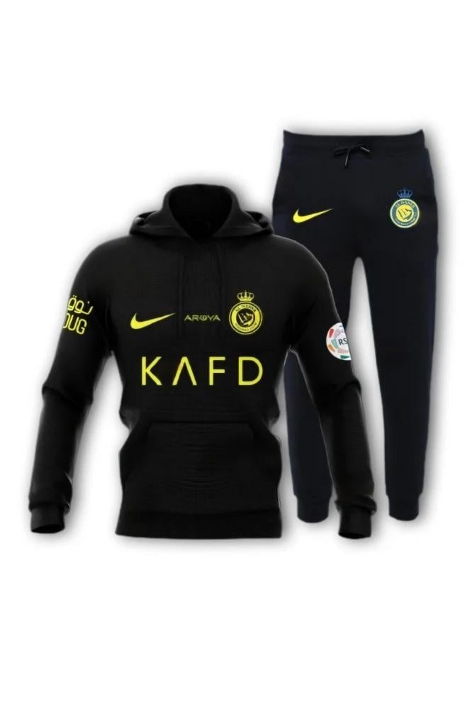 طقم النصر اسود شتوي بشعار نادي النصر بلوفر مع سروال طويل