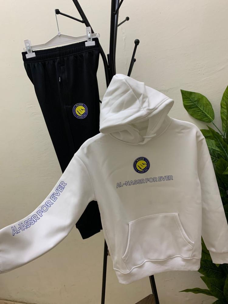 طقم النصر شتوي بشعار نادي النصر بلوفر مع سروال طويل