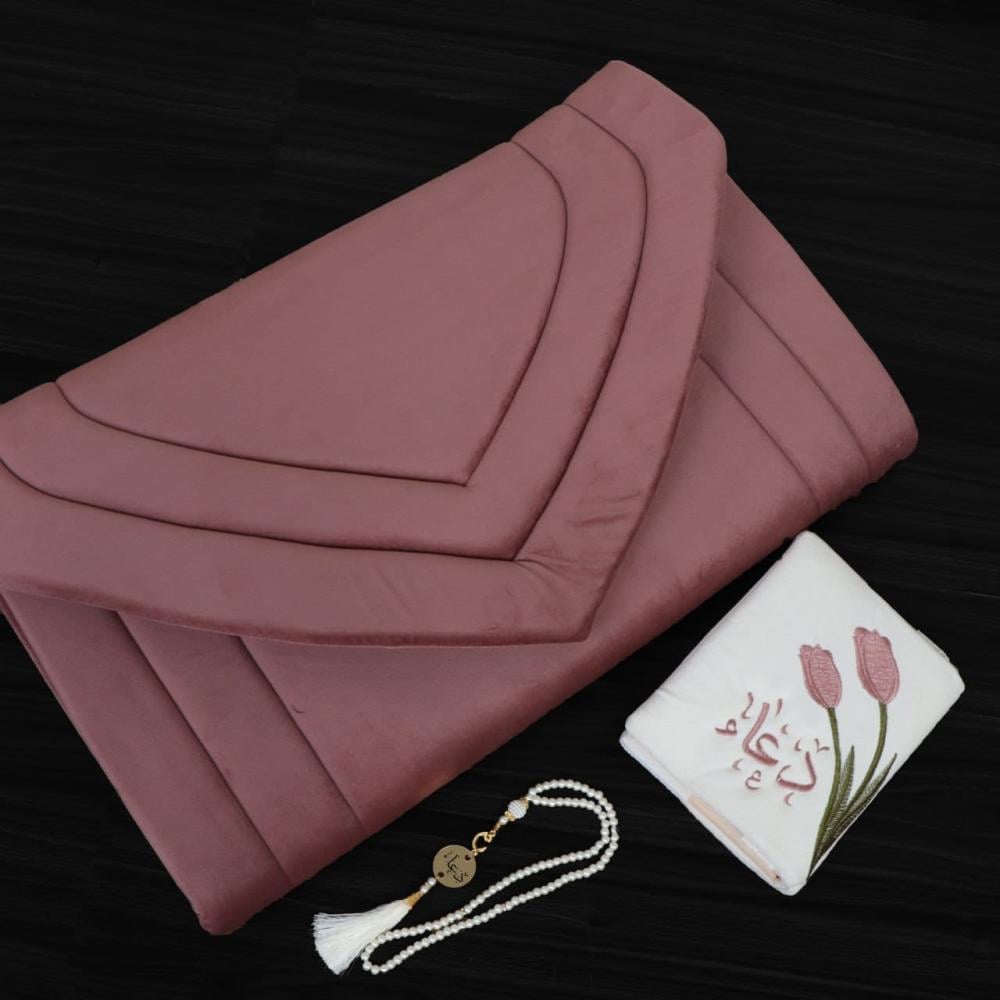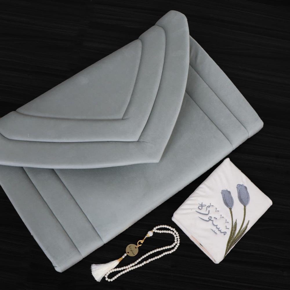 طقم هدايا رمضان الفاخر – مصحف وسجادة وسبحة بتصميم خاص باسمك