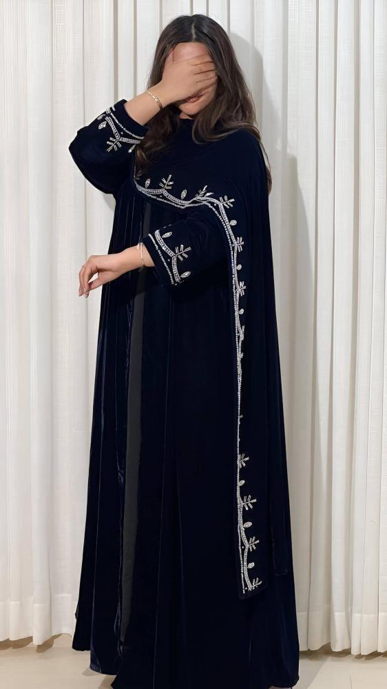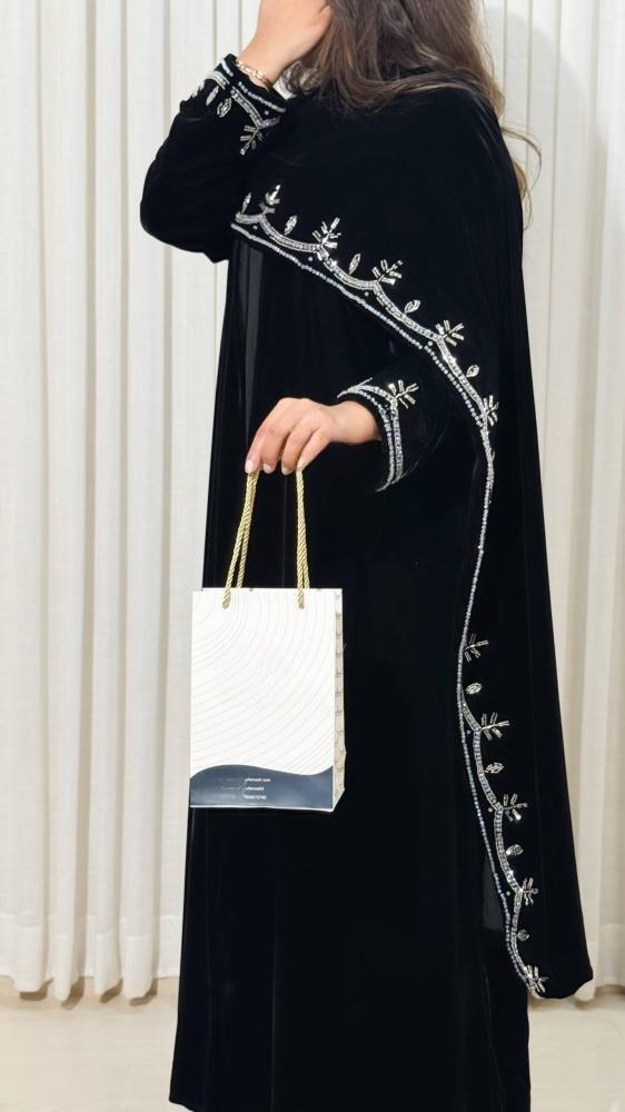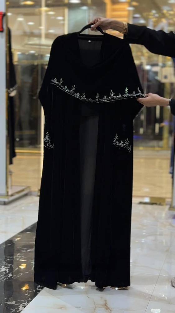 عباية مخملية فاخرة تجمع بين الدفه والرقيء بتصميم أنيق ينساب بانسيابية تامة. وتتزين بتطريز ناعم يبرز جمال التفاصيل. قطعة تمنحك حضورا راقيا وإطلالة شتوية فخمة تلامس الفخامة بكل بساطة.