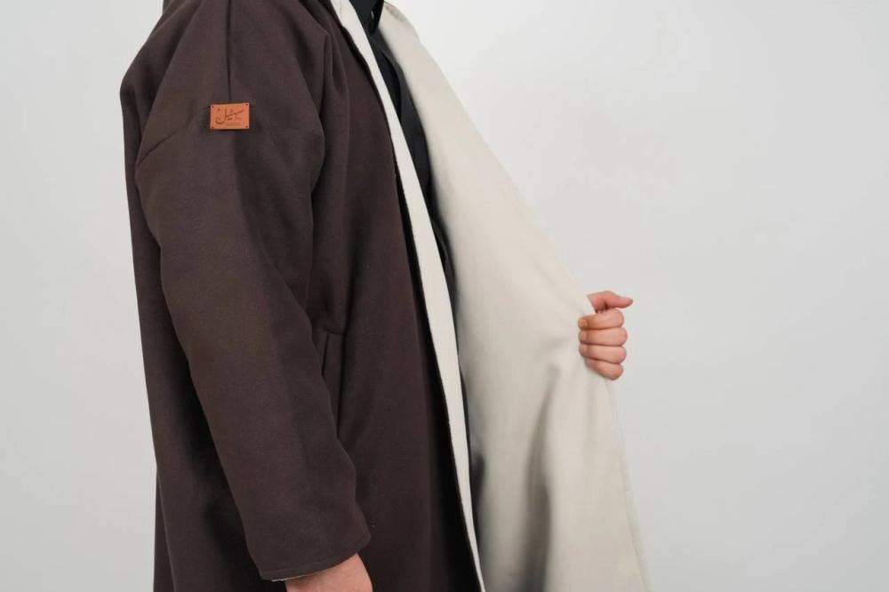 مصنوعة من جوخ فاخر عالي الكثافة يمنح دفء استثنائي ولمسة ناعمة، مع تصميم دبل فيس يجمع بين لون عودي ولون سكري فخم ليتناغم مع مختلف الإطلالات.