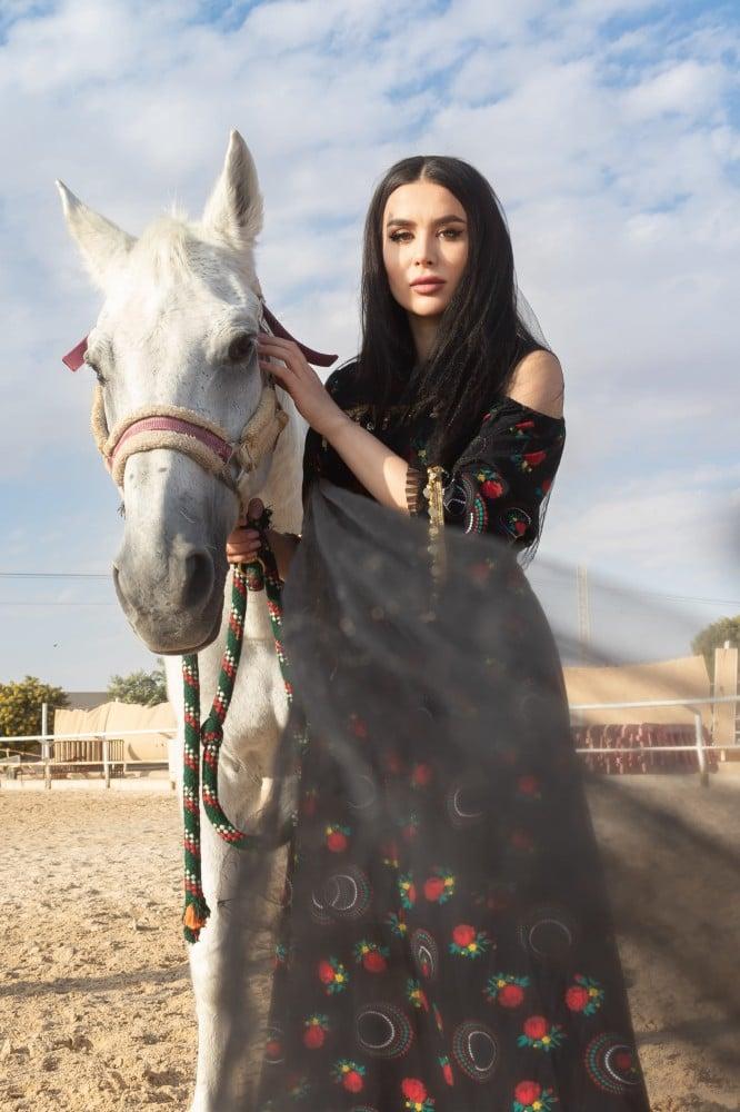 استعدي للاحتفال بيوم التأسيس السعودي بأناقة مع فستان شالكي مع شبكة وزينة باللون الذهبي، الذي يجسد التميز والفخامة في تصميمه. يعد هذا الفستان الطويل الخيار المثالي لأي مناسبة وطنية، وهو مصمم بعناية لتكوني محط الأنظار في هذا اليوم الوطني الهام.