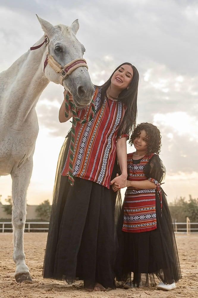 لا تفوتي فرصة الحصول على فستان شالكي مع شبكة وزينة باللون الذهبي للاحتفال بيوم التأسيس السعودي، وكوني جزءًا من هذا الحدث الوطني المهم بأناقة وفخامة.