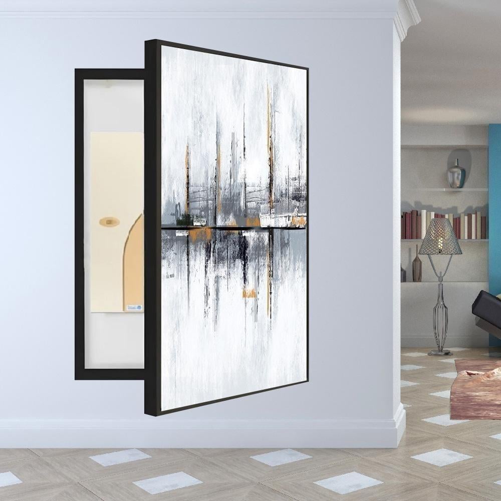 لوحة جدارية راقية وعصرية تقدم لمحة فنية رائعة لتحسين جمالية المساحات الداخلية. تمتاز بتصميم فريد يجمع بين الأناقة والوظائف العملية، حيث تُخفي بشكل أنيق عدادات الكهرباء، مما يضفي لمسة جمالية للبيئة المحيطة. تستخدم اللوحة مواد عالية الجودة، مما يجسد الدقة والمتانة.