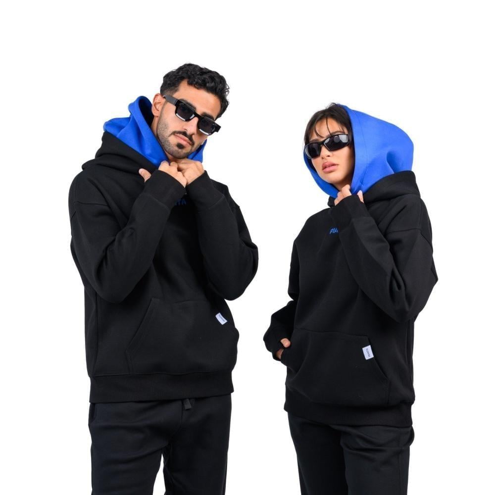 تميّز بإطلالة جريئة وعصرية مع هودي أسود موحّد للجنسين بتصميم مريح ولمسة شبابية أنيقة.