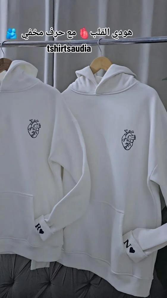 هودي أنيق بتصميم بسيط يحمل معنى عميق — قلب مطبوع بدقة عالية يرمز للمشاعر الصادقة، مع حرف مخفي على الكمّ يضيف لمسة شخصية فريدة.
